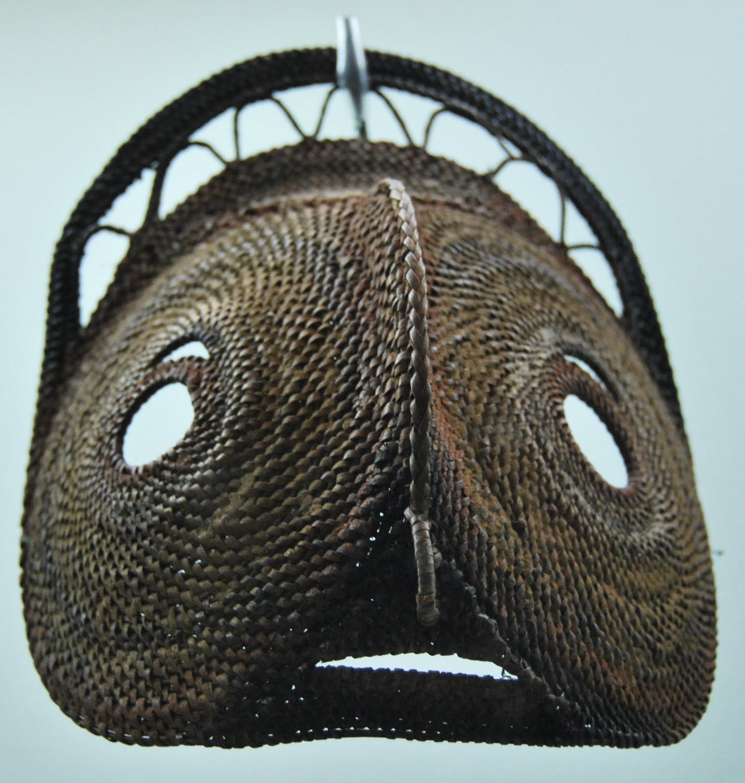 Visita al museo etnológico de Barcelona. De primeras, mi menda desbordado. Objetos cesteros de Cataluña, de Andalucía, de otras zonas de la Península. Más. De Japón, Papúa, Australia o norte de Africa. Pero por encima del desborde geográfico está el de la diversidad de objetos construidos por todas partes. ¡Qué riqueza tan grande! Parece como si la gente de acá y allá hubiera estado jugando desde tiempos inmemoriales con las técnicas cesteras y los materiales que tenían a mano para desarrollar infinitos objetos con incontables aplicaciones, desde las más cotidianas a las más festivas. Y, ¡con qué imaginación! Para muestra, dos botones: fíjaos en estas botas japonesas y en esa máscara de Papúa.