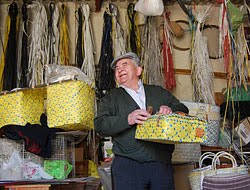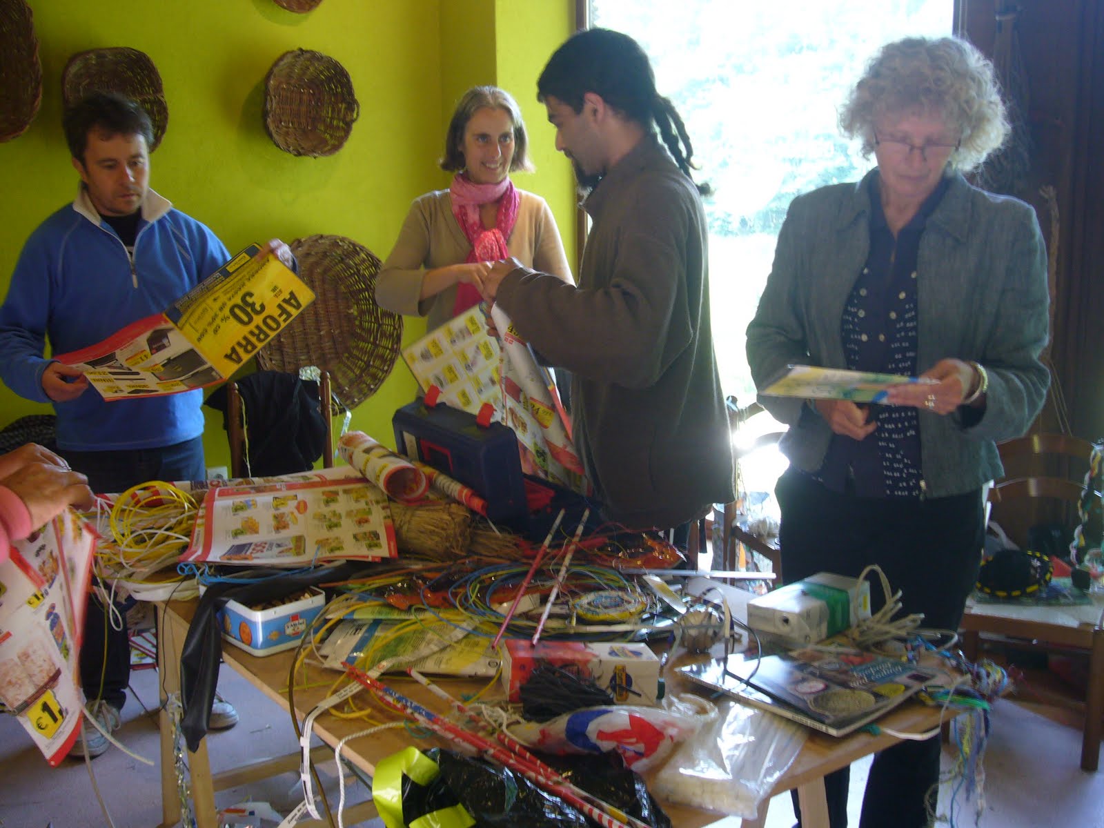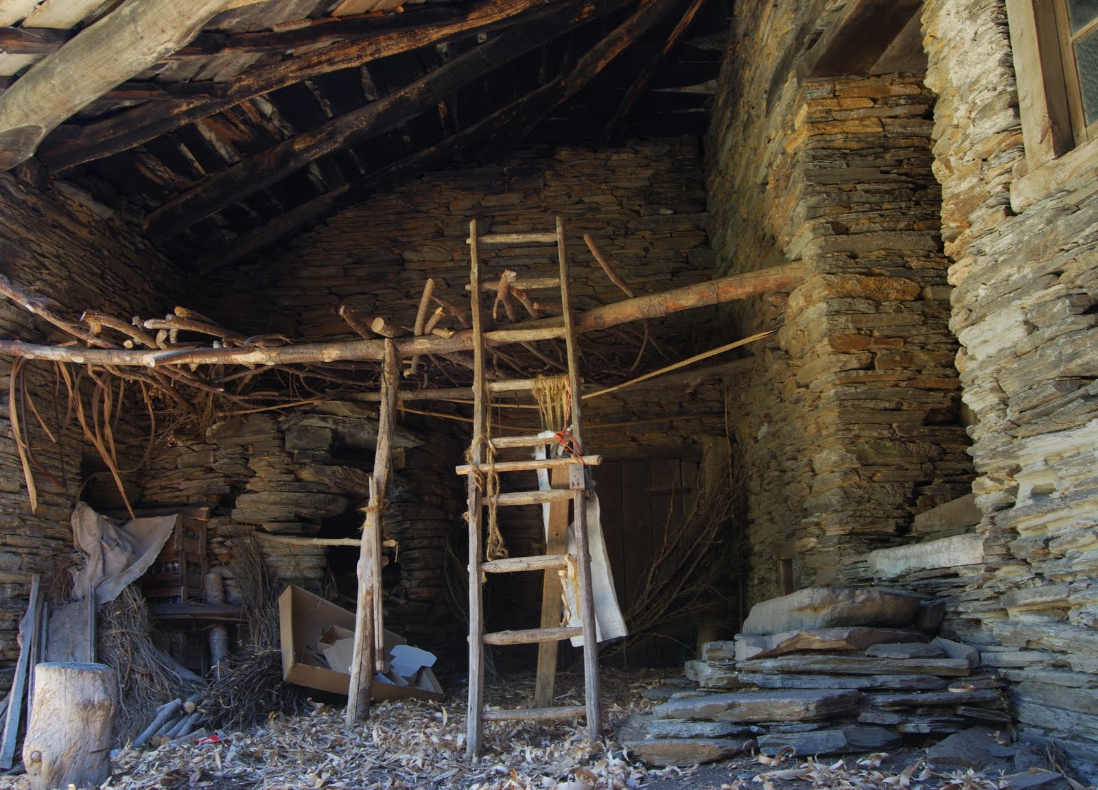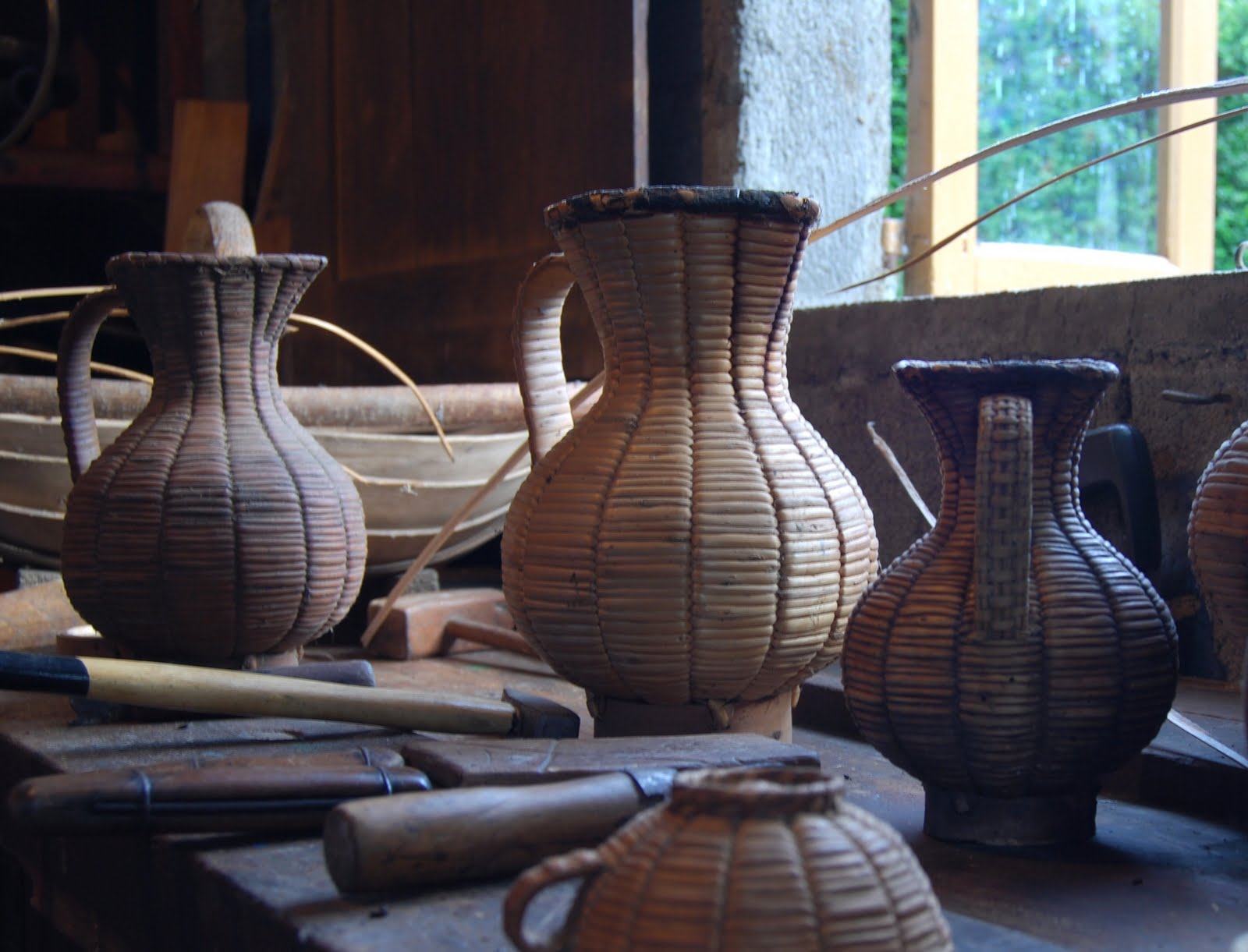 Por fin, el taller, escaleras arriba, mezcla la barra, la tele y las viejas estanterías de la antigua cantina que fué con los cestos hechos o a medio hacer que allí se tejen en los días de invierno. Otra vez "el más hermoso de los revoltijos" * y, murmurando en él, un tumulto de lejanas voces que quedaron de cuando gentes, vinos, comidas y fiestas se reunían allí.