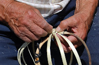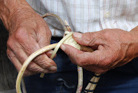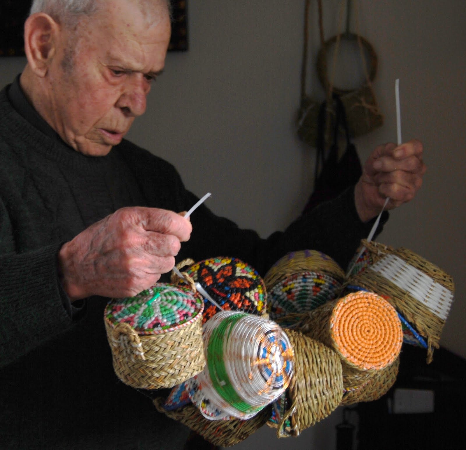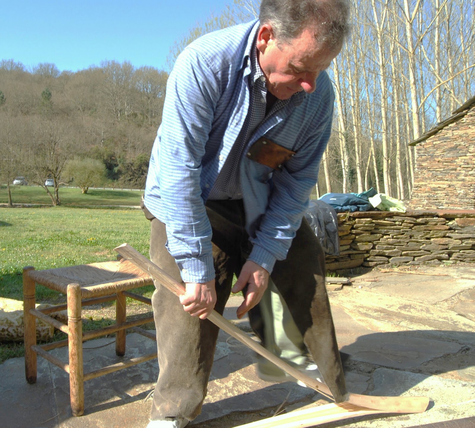 Pepe hace los cestos que hacía su padre, otros, pero los mismos, y nos cuenta cómo aprendió y cómo sigue en ello a ratos, para matarlos en los días fríos y porque la gente aún le pide algun mego para las castañas o el pan.