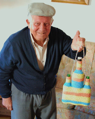 Te vas a visitar a Carlos "Soleta" en Medina Sidonia por regalarte de nuevo con su sonrisa y sus preciosas capachas de colores de flejes reciclados. El taller ha decaído un poco desde el último encuentro. Ya no cuelgan del techo tántas ristras de plásticos como antes, ya no hay tántos capachos, tánto color. Sientes como si "Soleta" fuera despidiéndose despacito de sus manos al paso que sus manos se alejan de pleitear. Pero salta el niño al rostro del viejo en una sonrisa y Carlos es una pildora de felicidad.