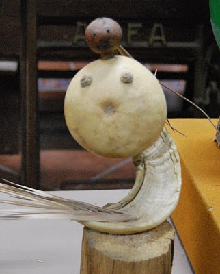Más que museo yo lo llamaría interesantísima colección; de cantidad de piezas relacionadas con esta comarca que Juan, hijo enamorado de ella, ha ido recogiendo y guardando durante muchos años y a la que se suma otra de figuras-esculturas que él mismo ha hecho con materiales recogidos en el campo: ramas, raíces, cardos, semillas, piedras, fibras vegetales.... Y además, ¡lo que no vemos!, todo el archivo fotográfico, oral , etc., que atesora en su casa y que precisaría de muchas visitas para ahondar en él. Y de nuevo te cabreas viendo todo este rico material apilado en un garage por falta de medios particulares y por la permanente obstinación de los poderes 'públicos' y económicos en seguir relegando a la miseria lo que tan hermosamente el pueblo fue y va destilando de ella. Y es que no hay que engañarse, como dice don Fernando Pessoa: un nuevo dios es sólo una palabra, y a buen entendedor pocas bastan.